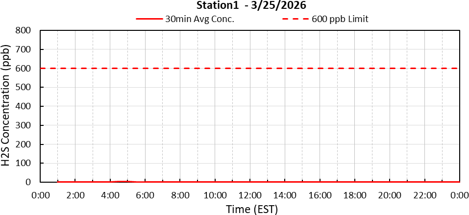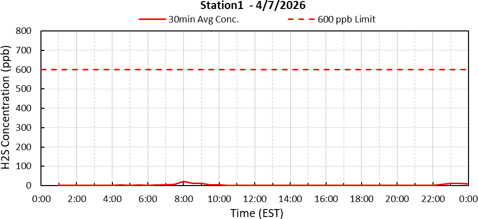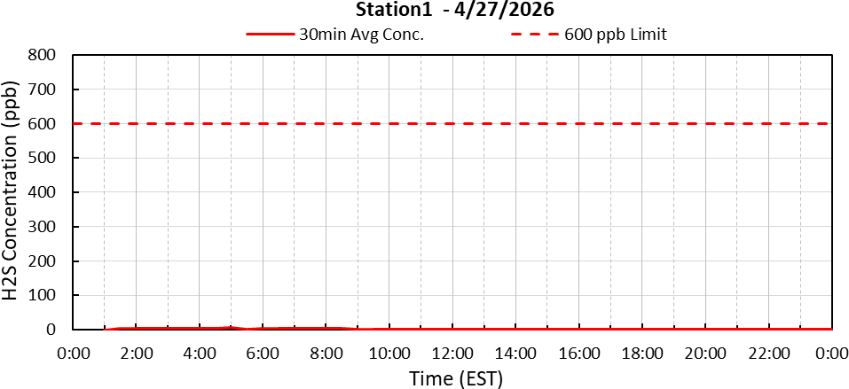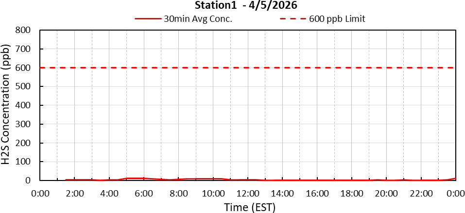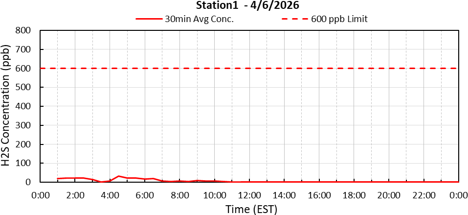 New-Indy continuously monitors hydrogen sulfide levels at the Catawba Mill. The report below shows hydrogen sulfide levels as reported by New-Indy and is updated daily.